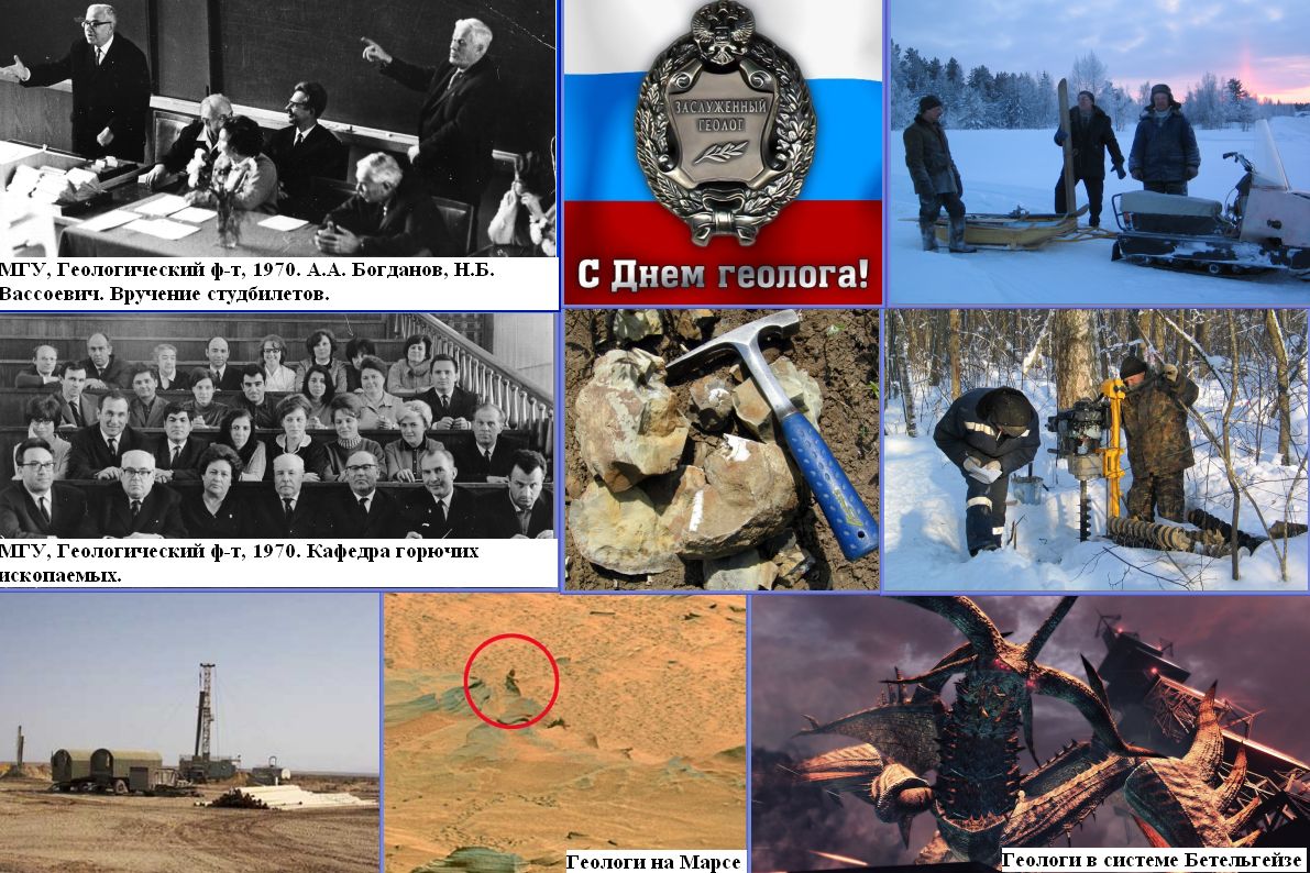 День геолога профессиональный праздник геологов, традиционно отмечаемый в первое воскресенье апреля. Учреждён Указом Президиума Верховного Совета СССР от 31 марта 1966 г. в ознаменование заслуг советских геологов в создании минерально-сырьевой базы страны. Поводом для учреждения стало открытие в 1966 г. первых месторождений Западно-Сибирской нефтегазоносной провинции.